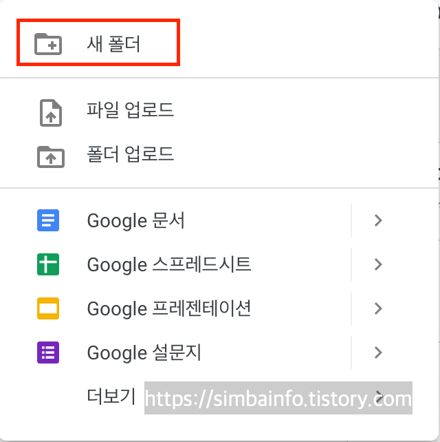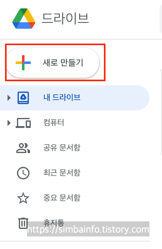 드라이브 창에 들어가서 좌측에 새로 만들기를 클릭한다.