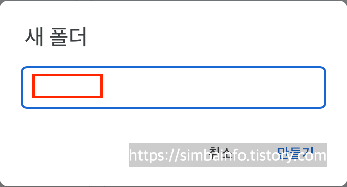 새폴더의 이름을 작성한 뒤 만들기를 클릭하여 만들어준다.