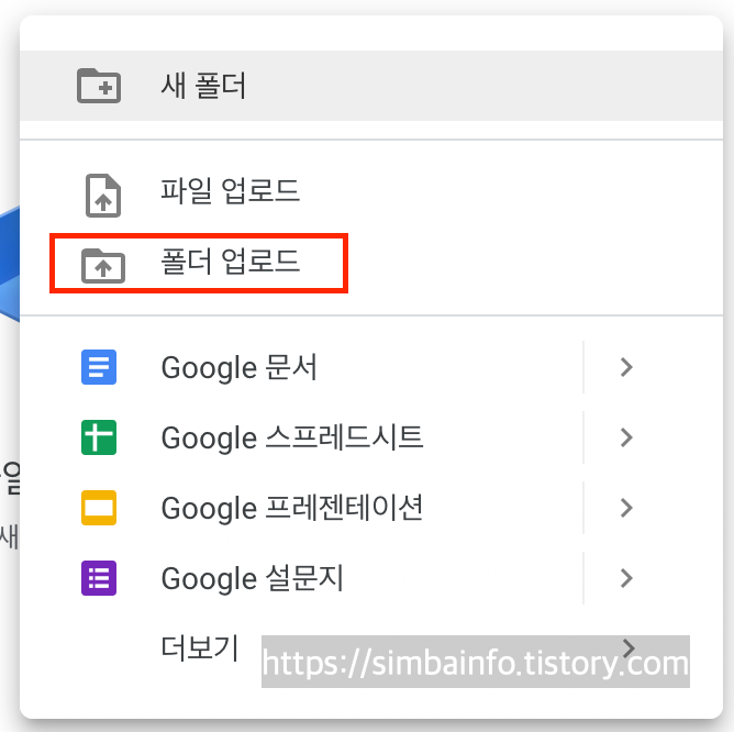 우측버튼을 클릭하고 폴더 업로드를 클릭한다.