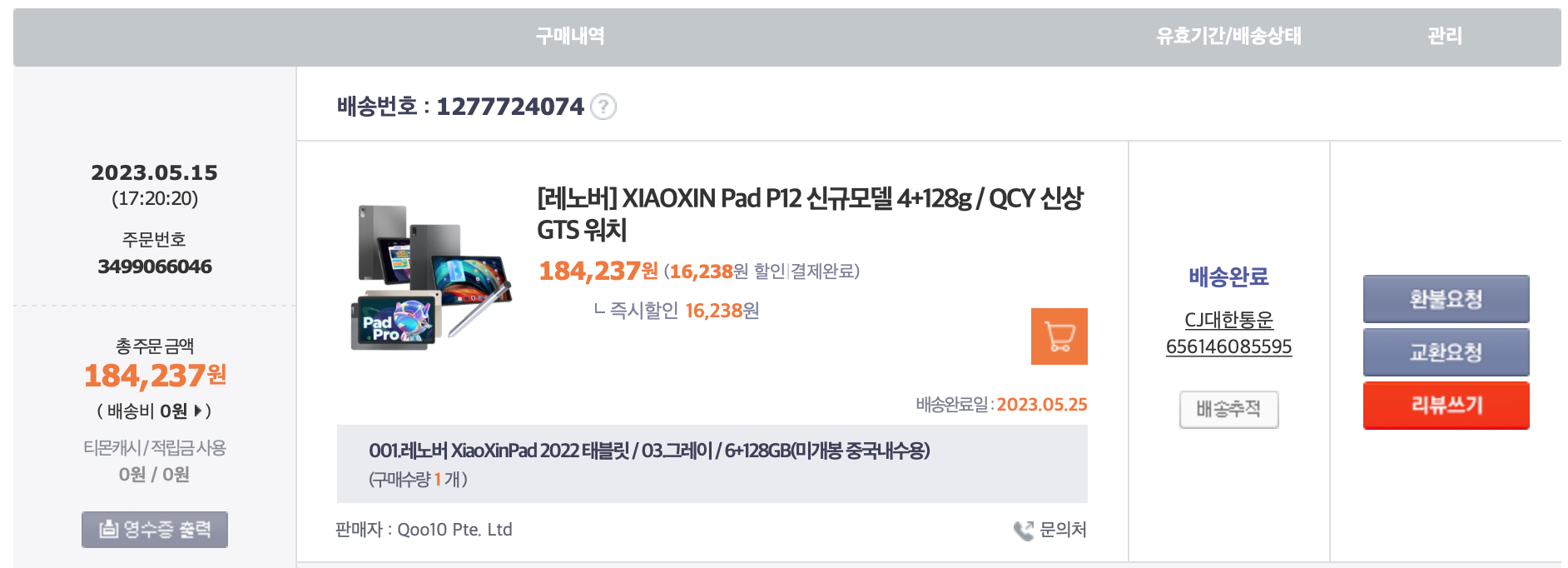 가성비 개쩌는 이 태블릿은 그때그때 가격이 다르다. 어떤 글을 보면 10만 원대 구매도 가능한 글을 본 적이 있다. 그러나 나의 구매 가격은?