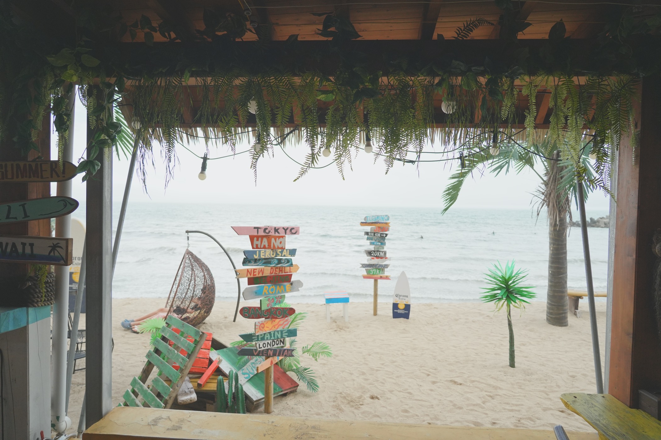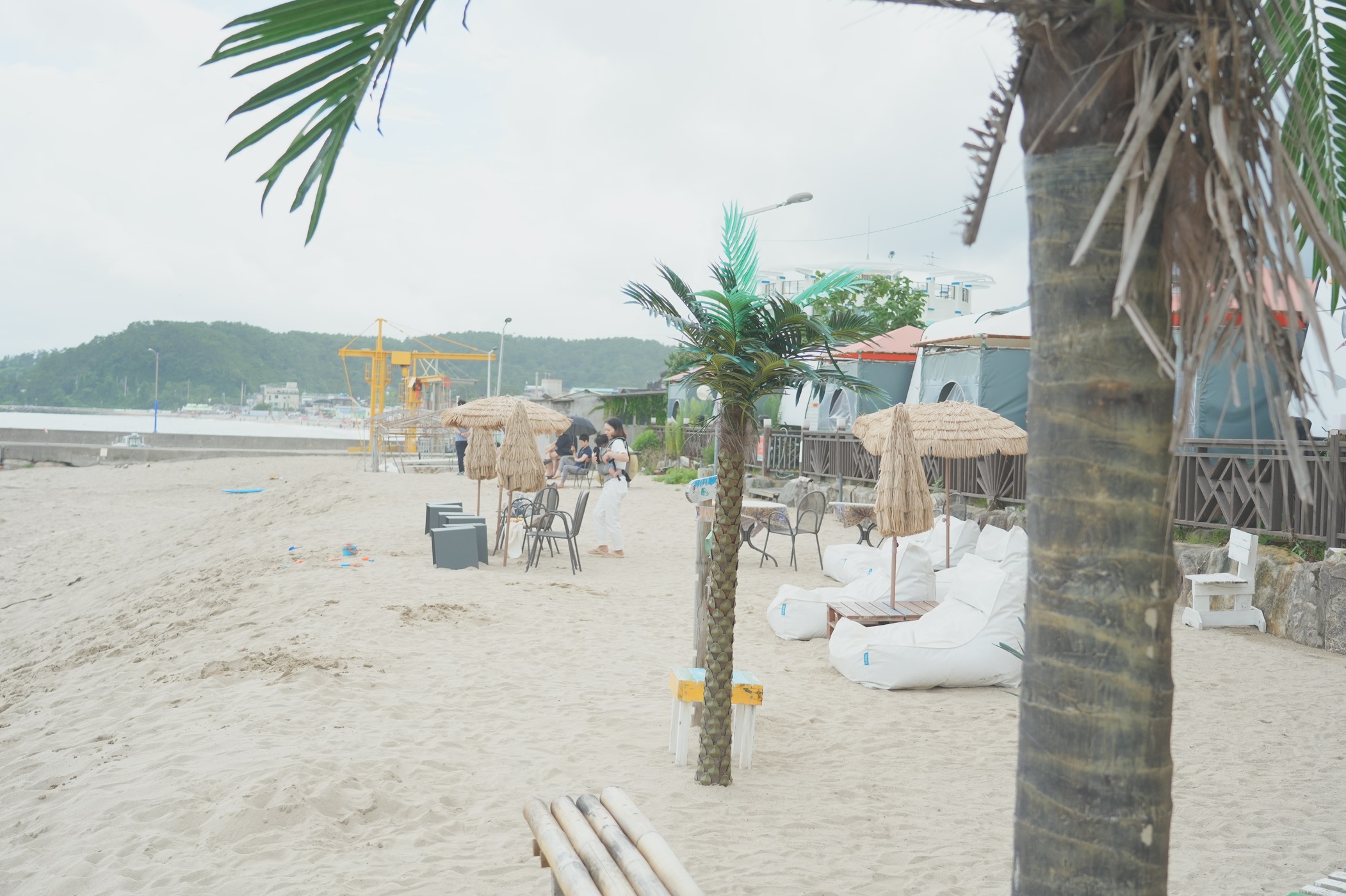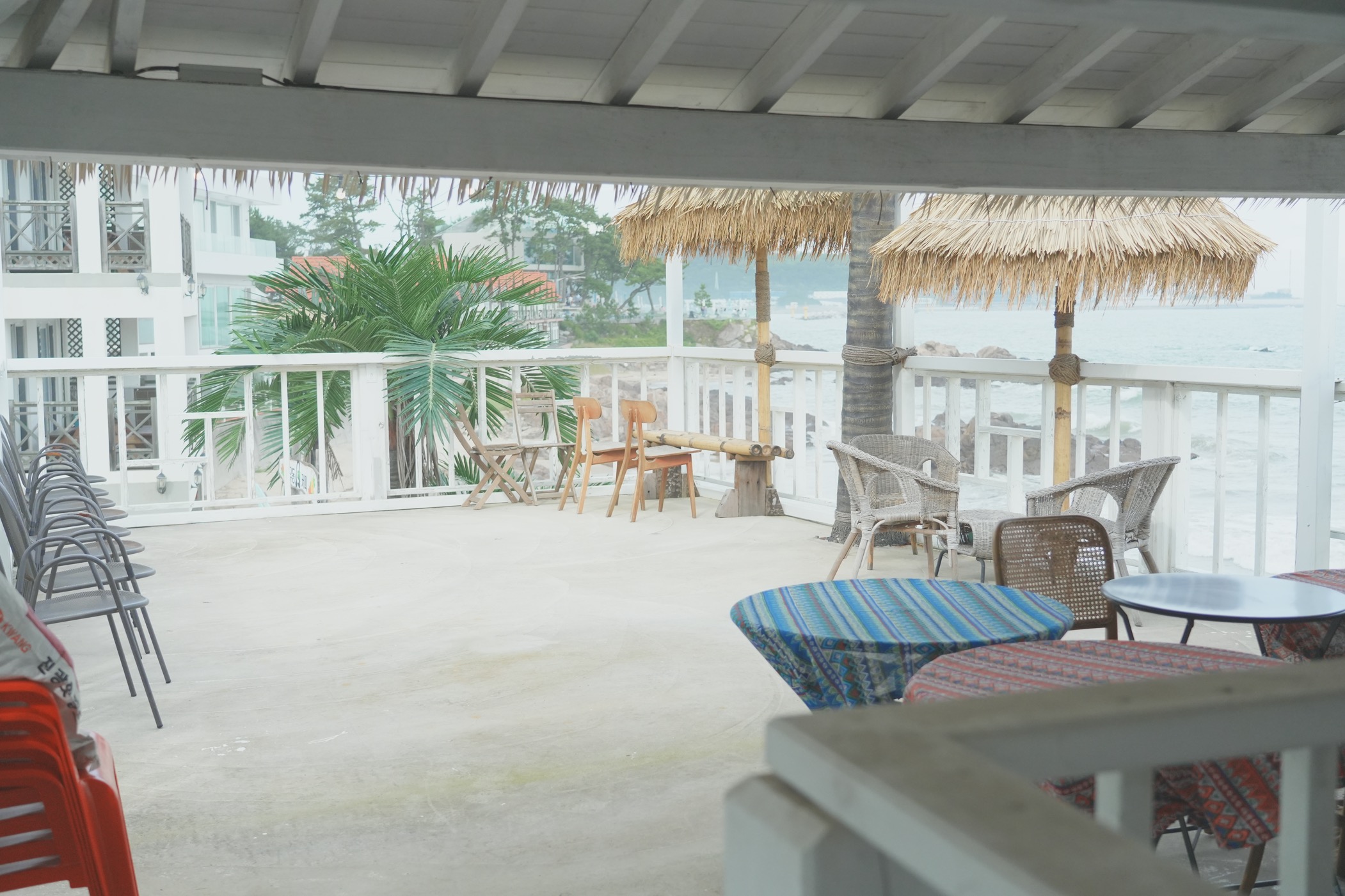 야자수와 짚으로 된 가림막은 해외느낌 치트키인 듯.