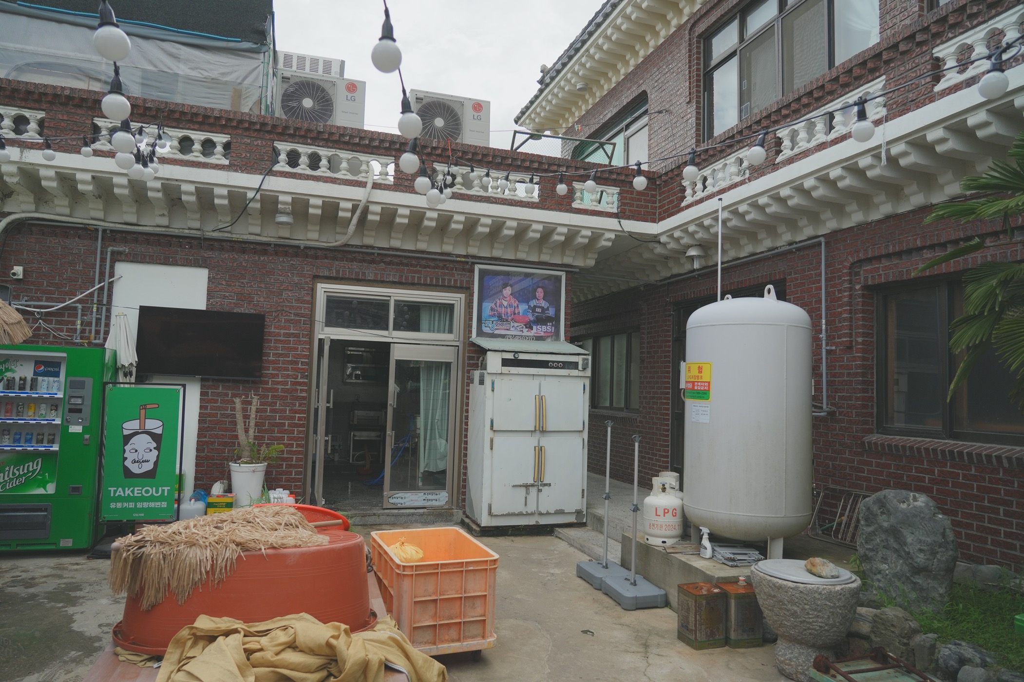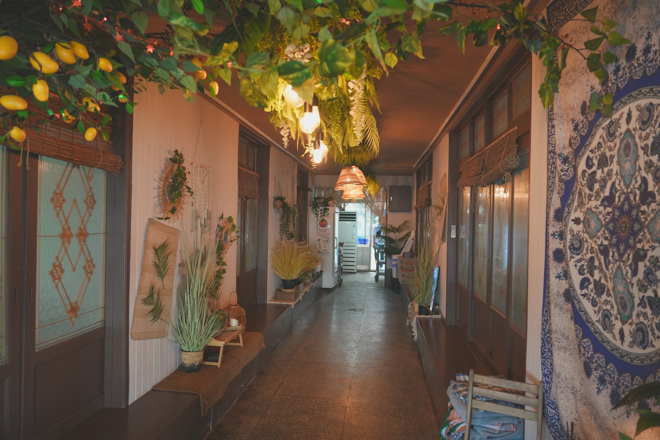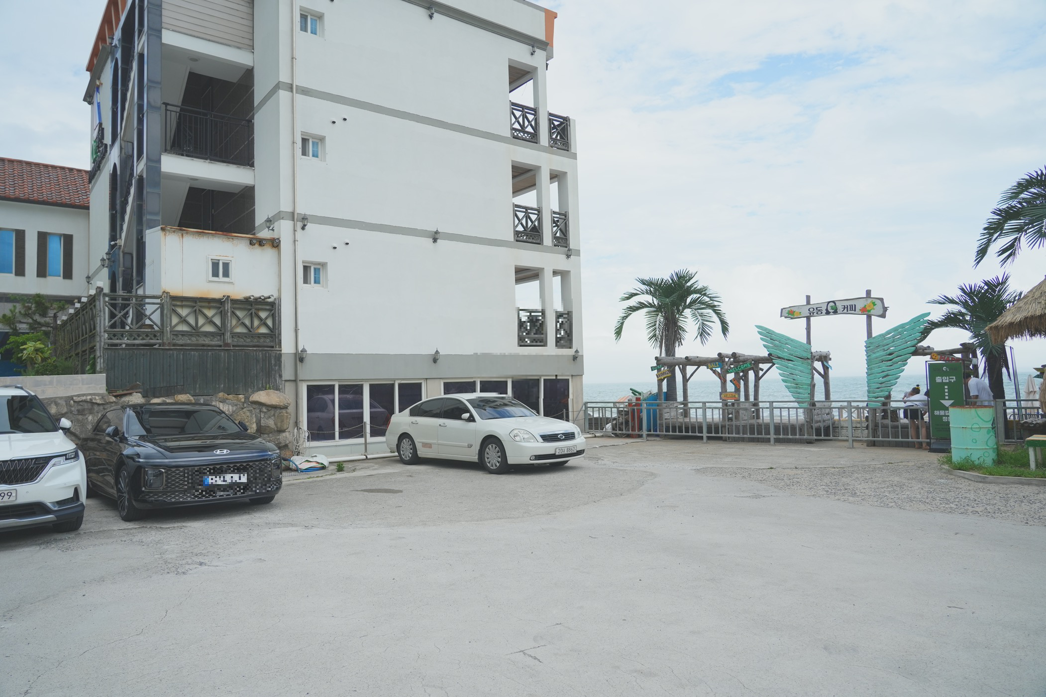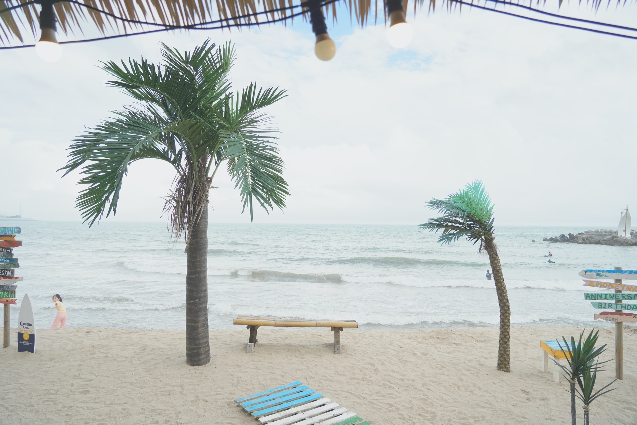 야자수와 짚으로 된 가림막은 해외느낌 치트키인 듯.