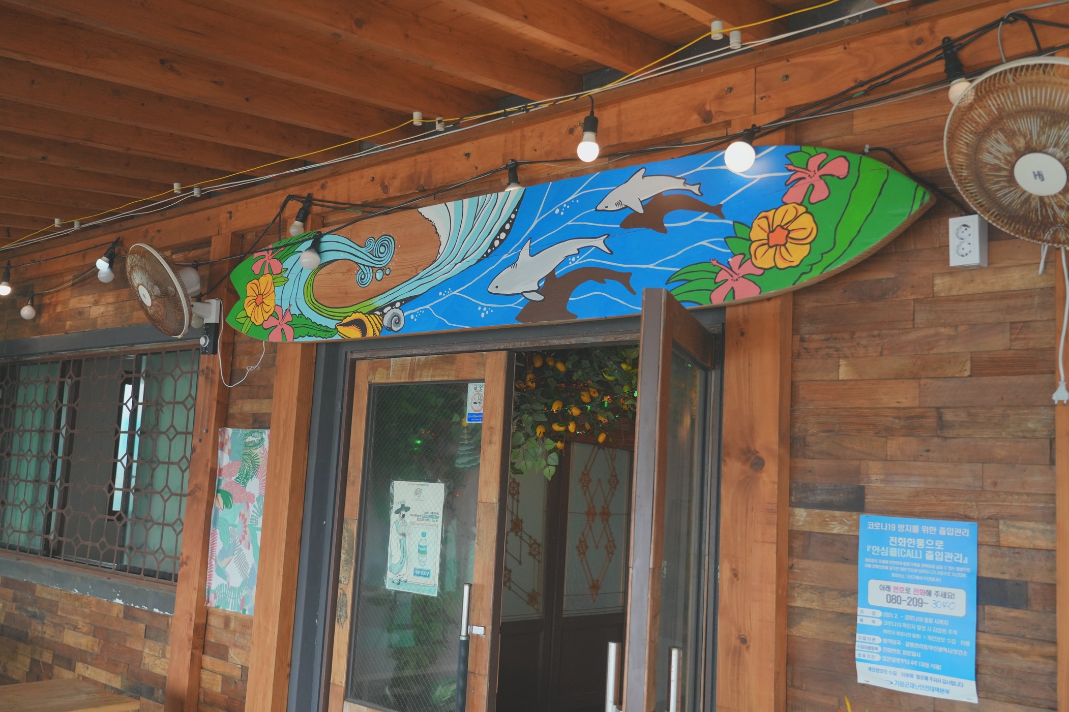 서핑보드가 왜 있나 했는데 앞바닷가에서 서핑하시는 분들이 많았다.
