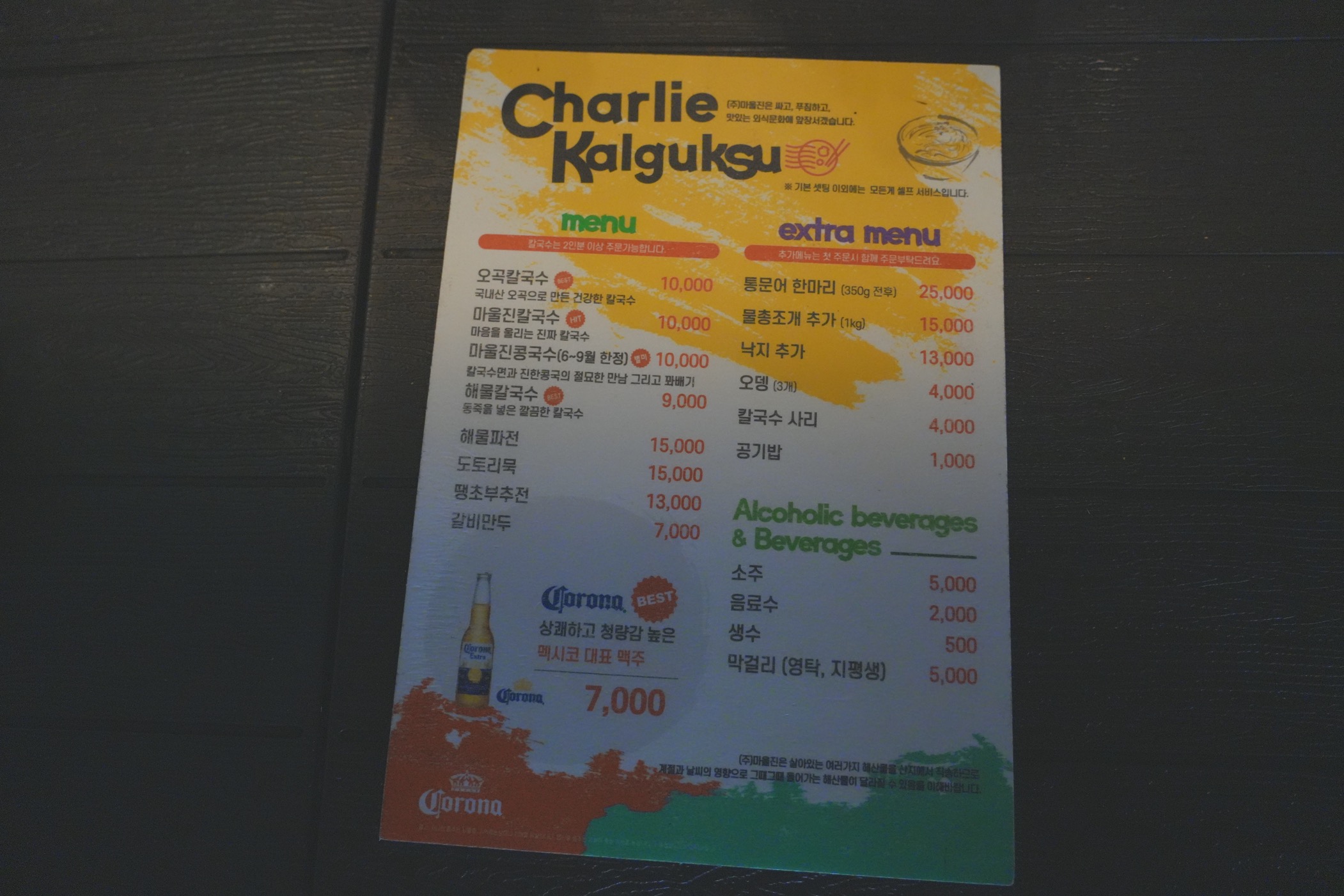 해외느낌 나지 않은 메뉴판 ㅋㅋ 해산물 팔 것 같은 가게 풍경인데 메뉴는 산중턱에 파는 음식점 ㅋㅋ
