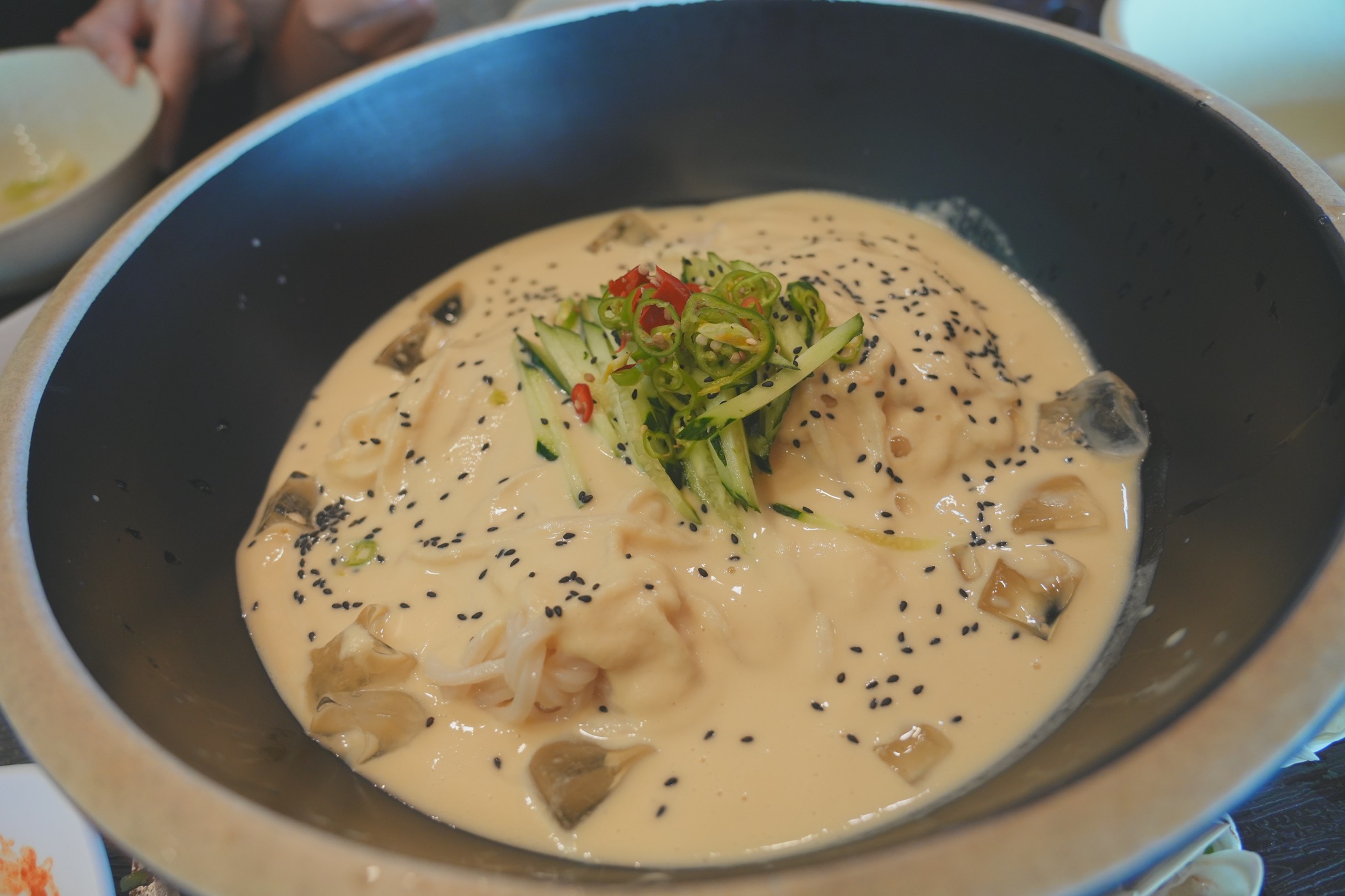 콩국수.. 이건 호불호가 있겠지만 처음엔 엥? 머지하다가 먹다 보니 맛있어지는 그 맛. 더워서 그런가 너무 시원하게 잘 먹었다. 건더기 얼음 다 먹으..