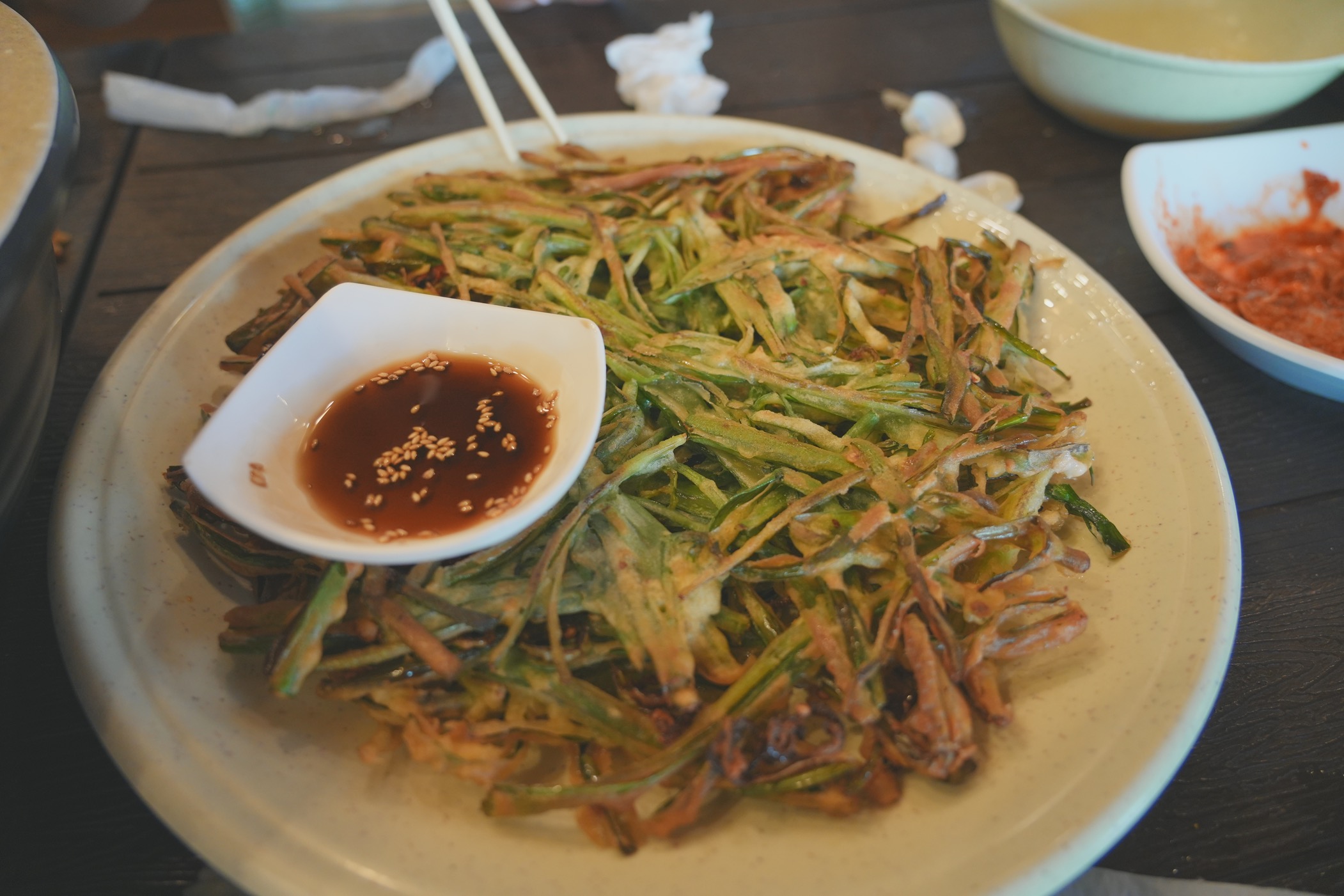땡초 부추전인데 이게 갑갑! 아내분도 아주 맛있다고 극찬한... 바삭바삭하고 땡초라 매울 것 같은데 그렇진 않고 땡초의 달콤 쌉쌀한 맛을 느낄 수 있는 부추전이었다. 이건 강추다 강추!!