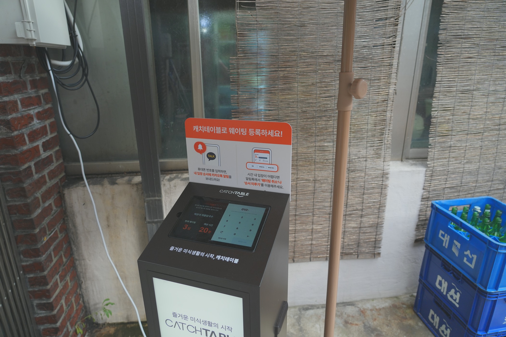 핸드폰번호 인증 후 대기번호표를 등록한다. 차례가 되면 연락해 주는 시스템.