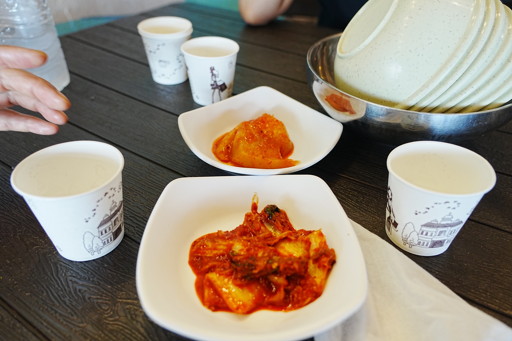 우린 해물칼국수 2인, 마울진 콩국수 2인, 해물파전 1개, 땡초부추전 1개, 막걸리를 주문했다. 아 여기서 막걸리는 주문하니 영탁, 지평생으로 안 오고 순희?로 막걸리를 주었다.